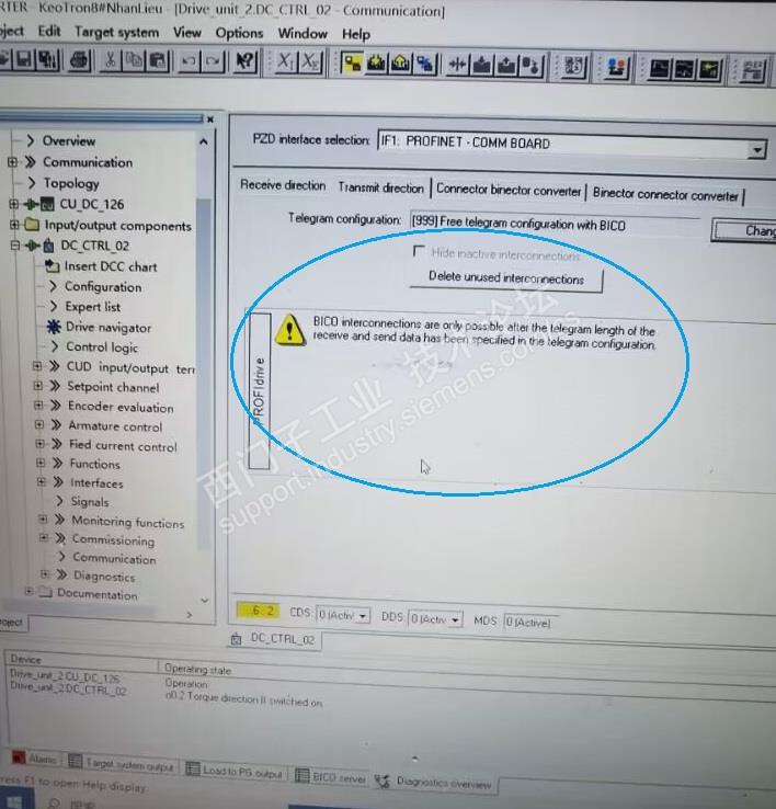 我自己全程用BOP调试出来的DCM,再通过StarterUpload,查看PROFIdrive组态画面,看不到组态数据,见下图: