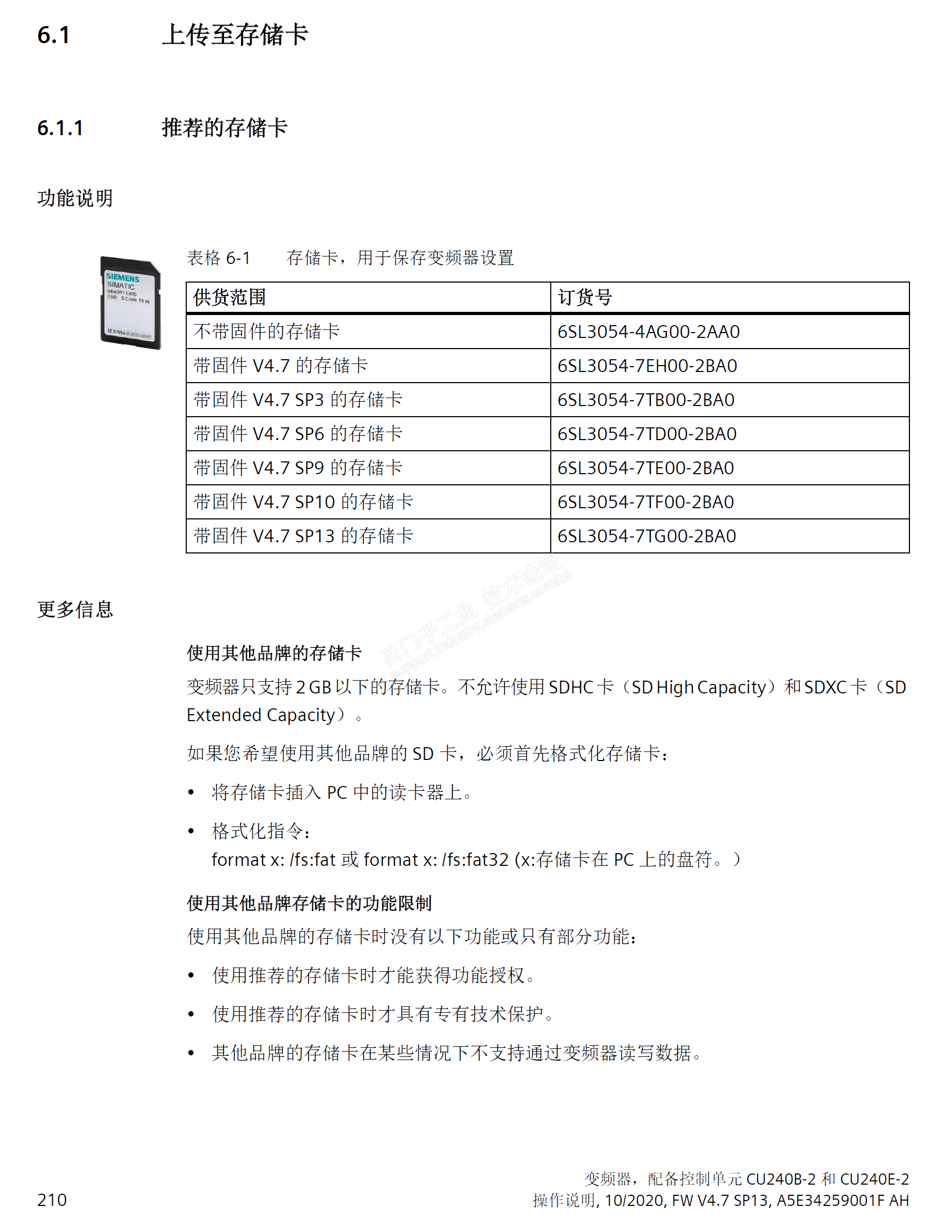 意思是:你买了如EPOS授权、安全功能授权、自己编写控制功能参数加密、等等,都需要授权绑定(西门子SINAMICS)卡。这些都不能用自己的SD卡代替。