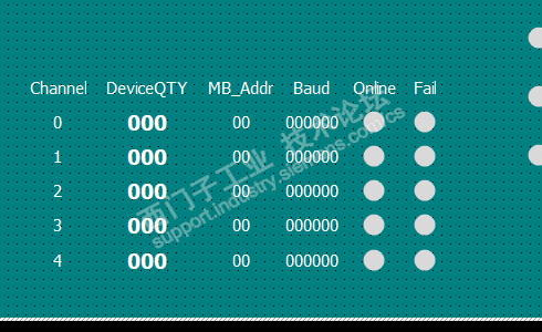 监视界面上的关于通道的设备数量、从站地址、波特兰、在线与否这些是关于"ModbusChannel"的还是关于从站设备的?