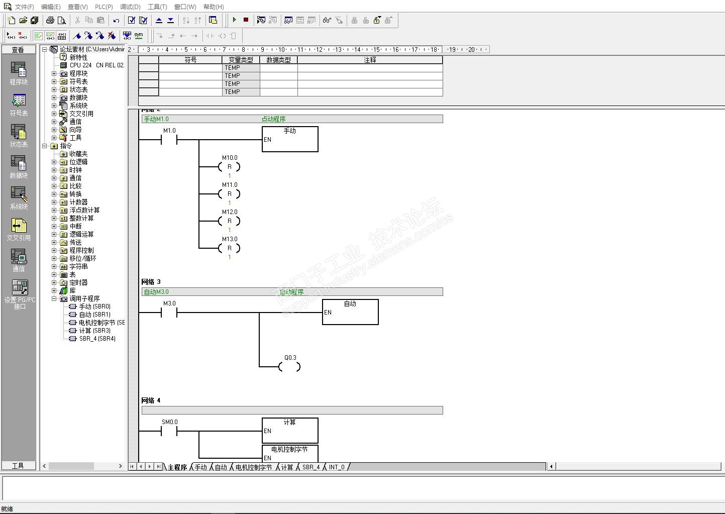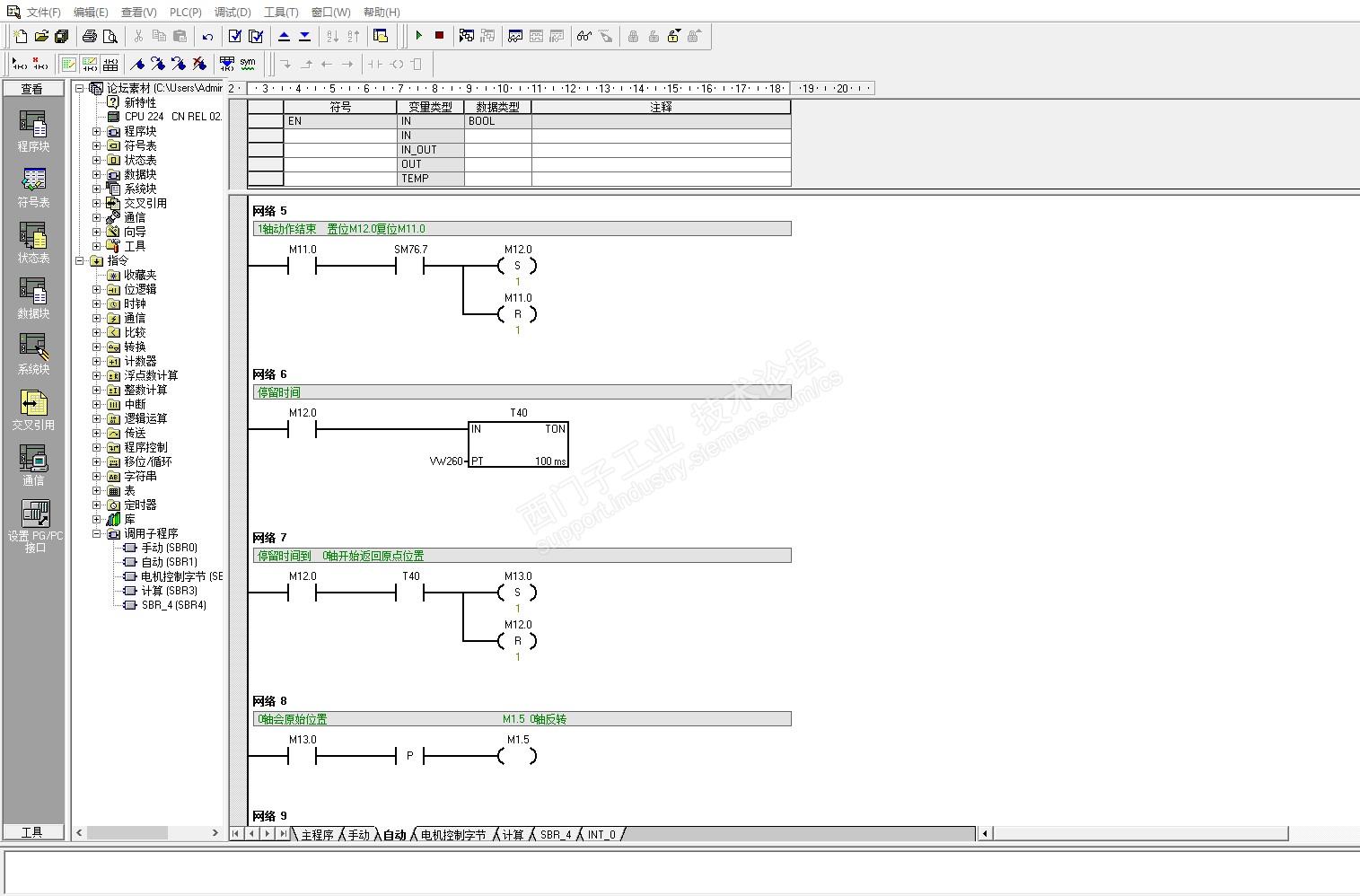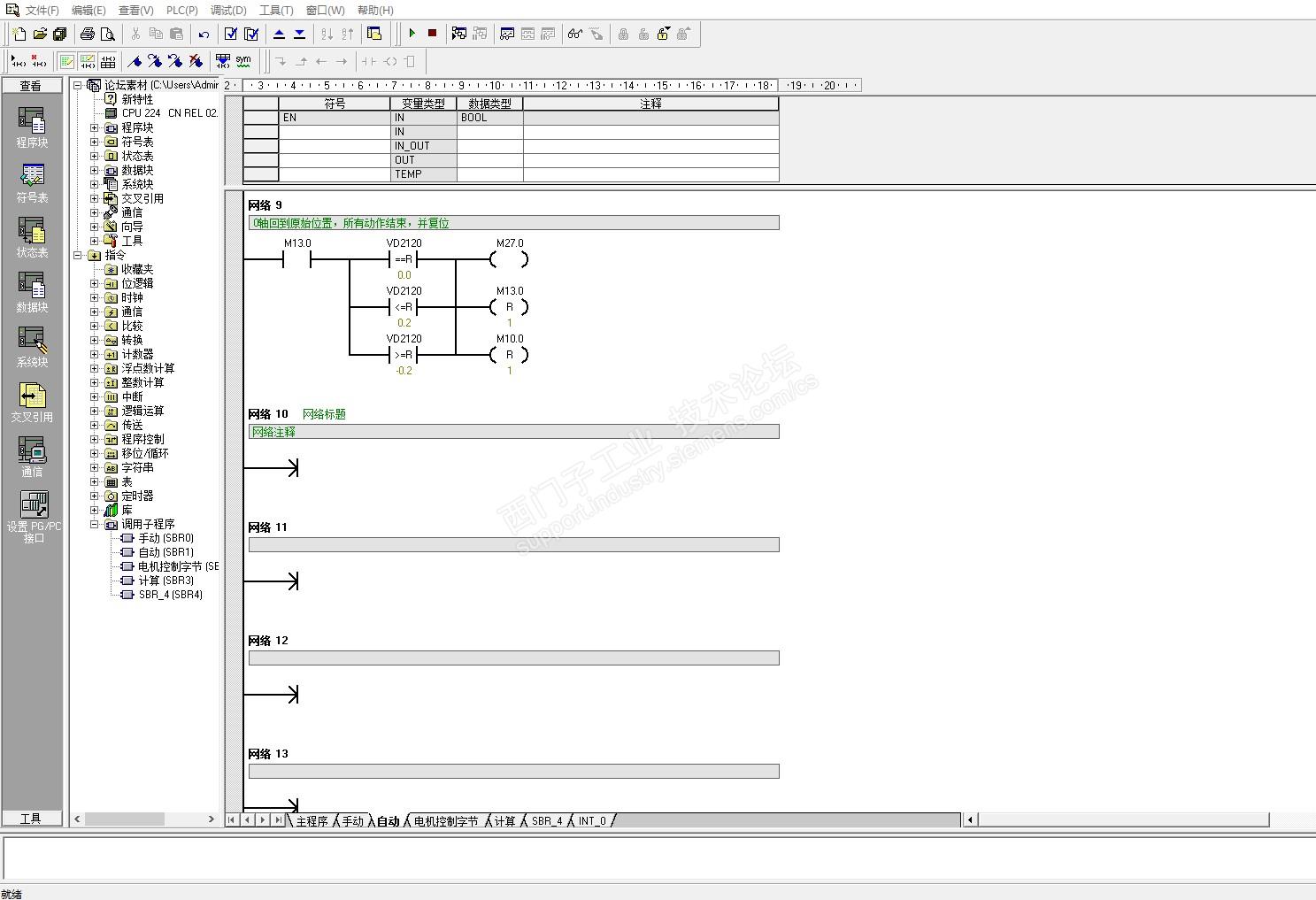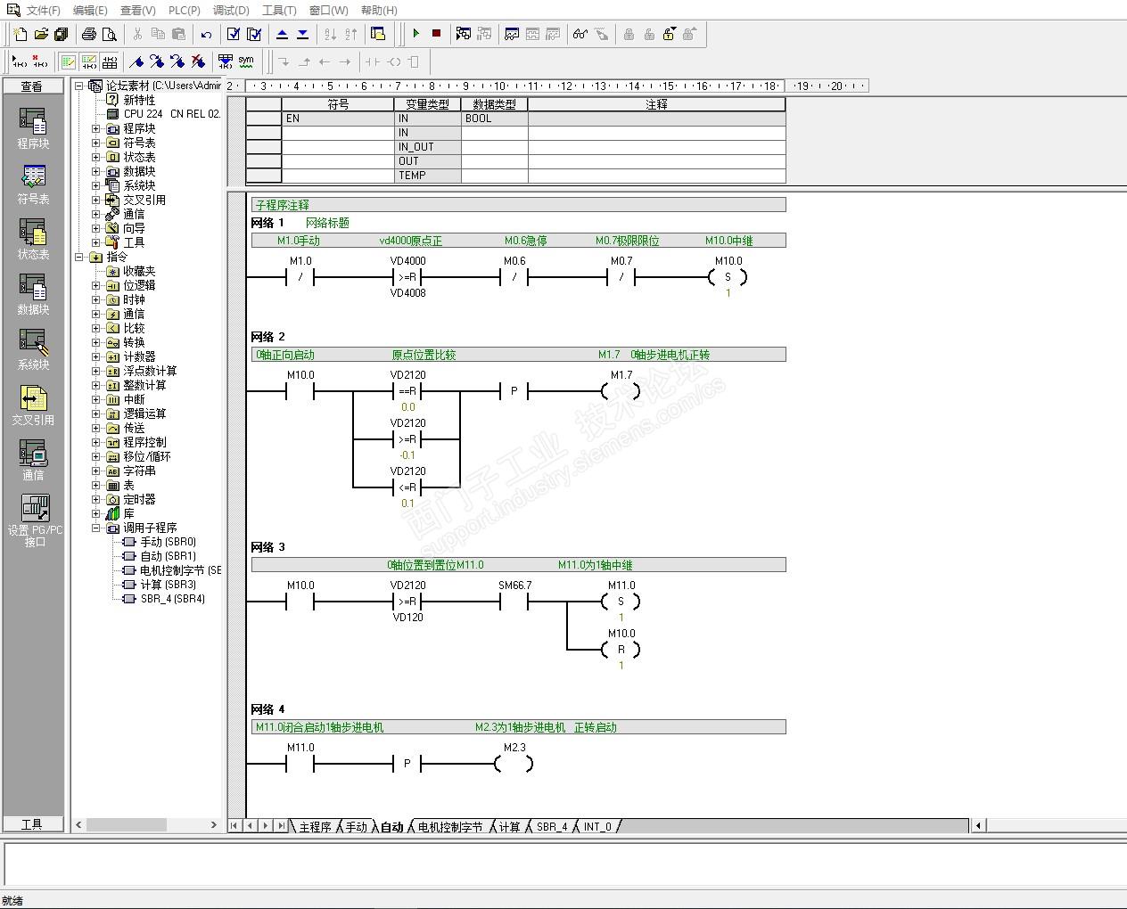 上面三张图是子程序---主要是想在这个子程序写自动循环程序。上面三张图中是一套完整的两轴运动控制,但是只能运行一次后面就没有动作了。现在想让他在没有按下停止键时无限循环运行,但是不知道怎样在这个子程序里写无线循环程序,自己自学,没有一点思路,所以上来向各位大佬取取经,烦请各位大佬指点一下,先谢谢了。
