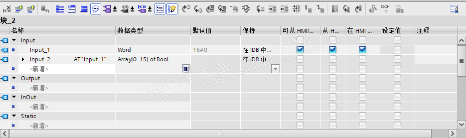 在FB块可以使用AT覆盖已声明的变量,但在FC块上使用不了,是什么原因?上图是FB块,下图是FC块