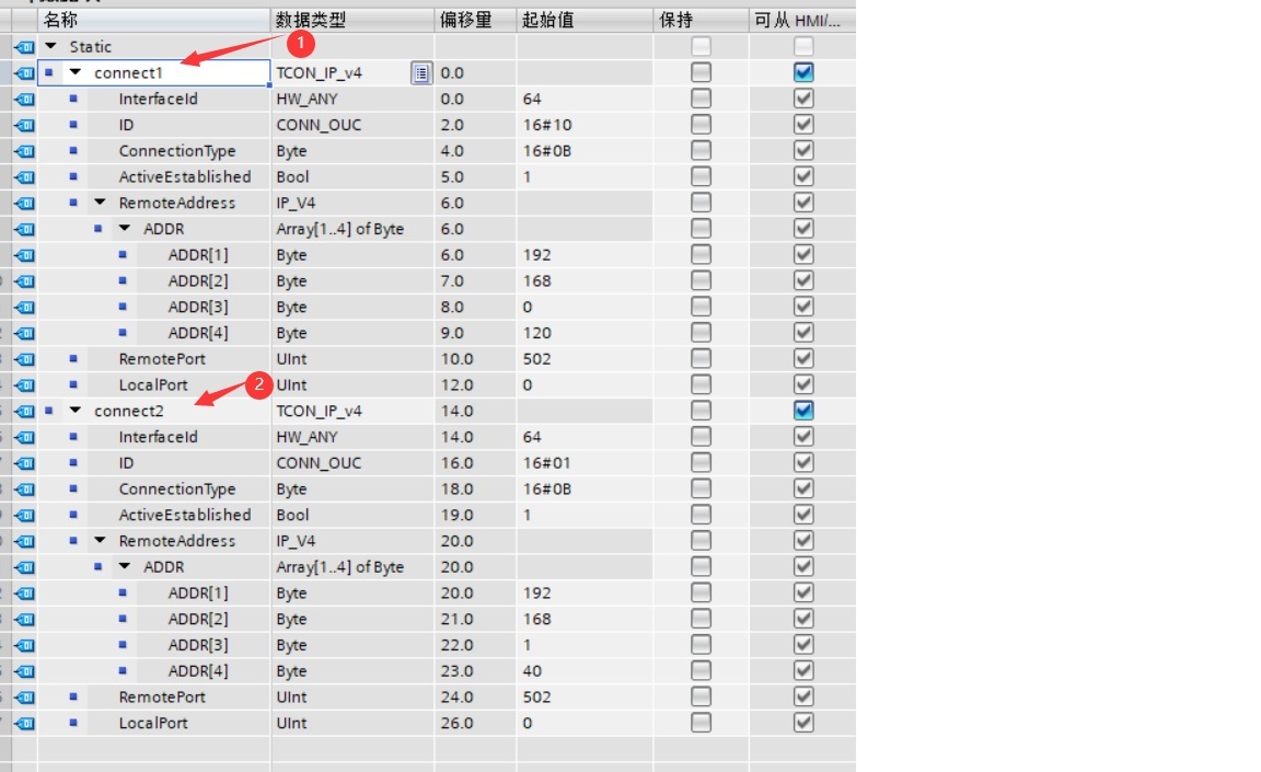 现在需要通过modbusTCP再读一个数采仪的数据(IP地址192.168.1.40),是直接添加在原来的FB的轮训程序里呢,还是需要新开一个FB呢?在西门子网站找的文件要求在原来的数据块增加Connect,但是西门子400电话技术支持又说需要新开一个FB。试了一下,两种办法都不行,正确的办法应该是怎么处理呢?