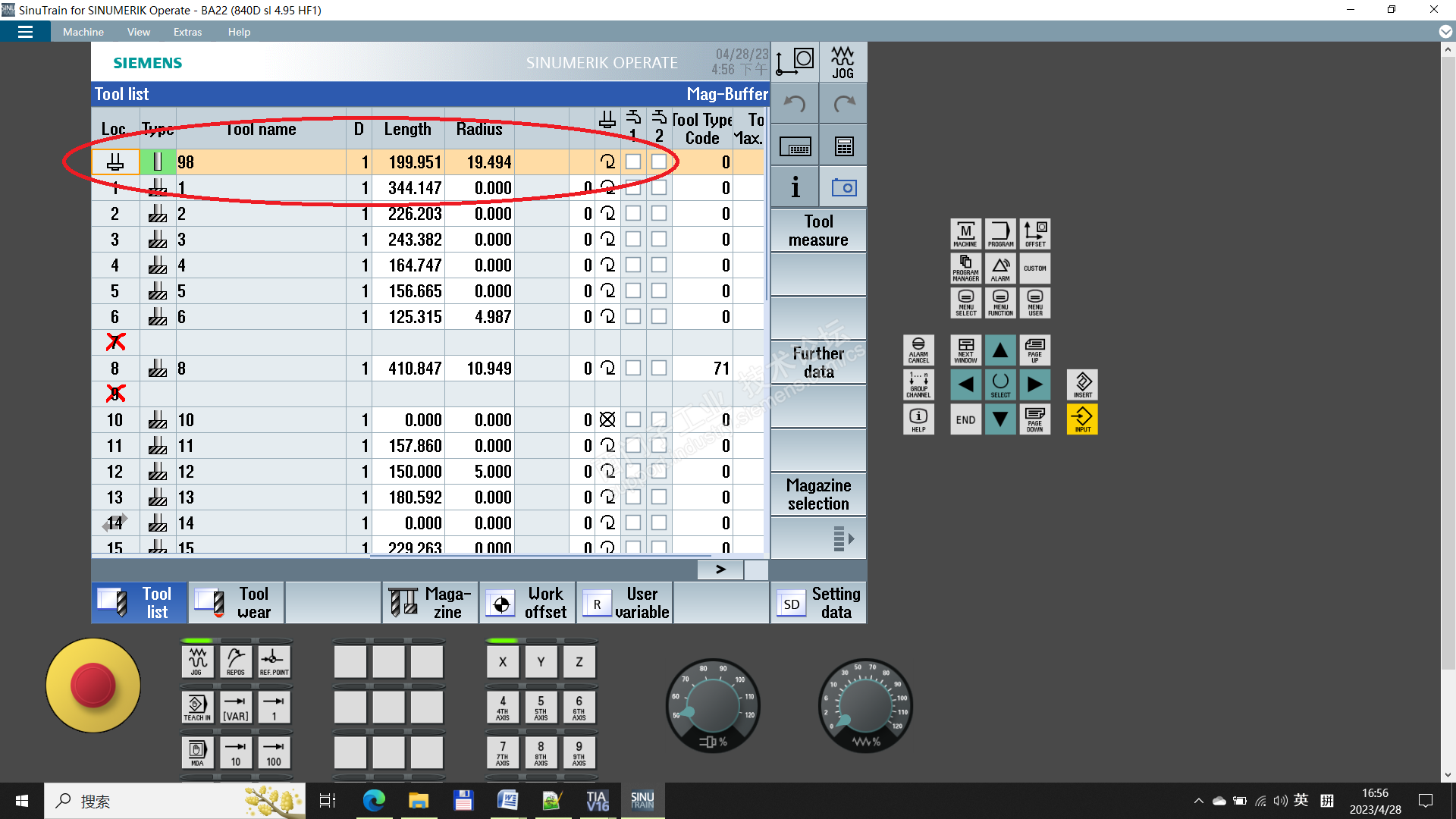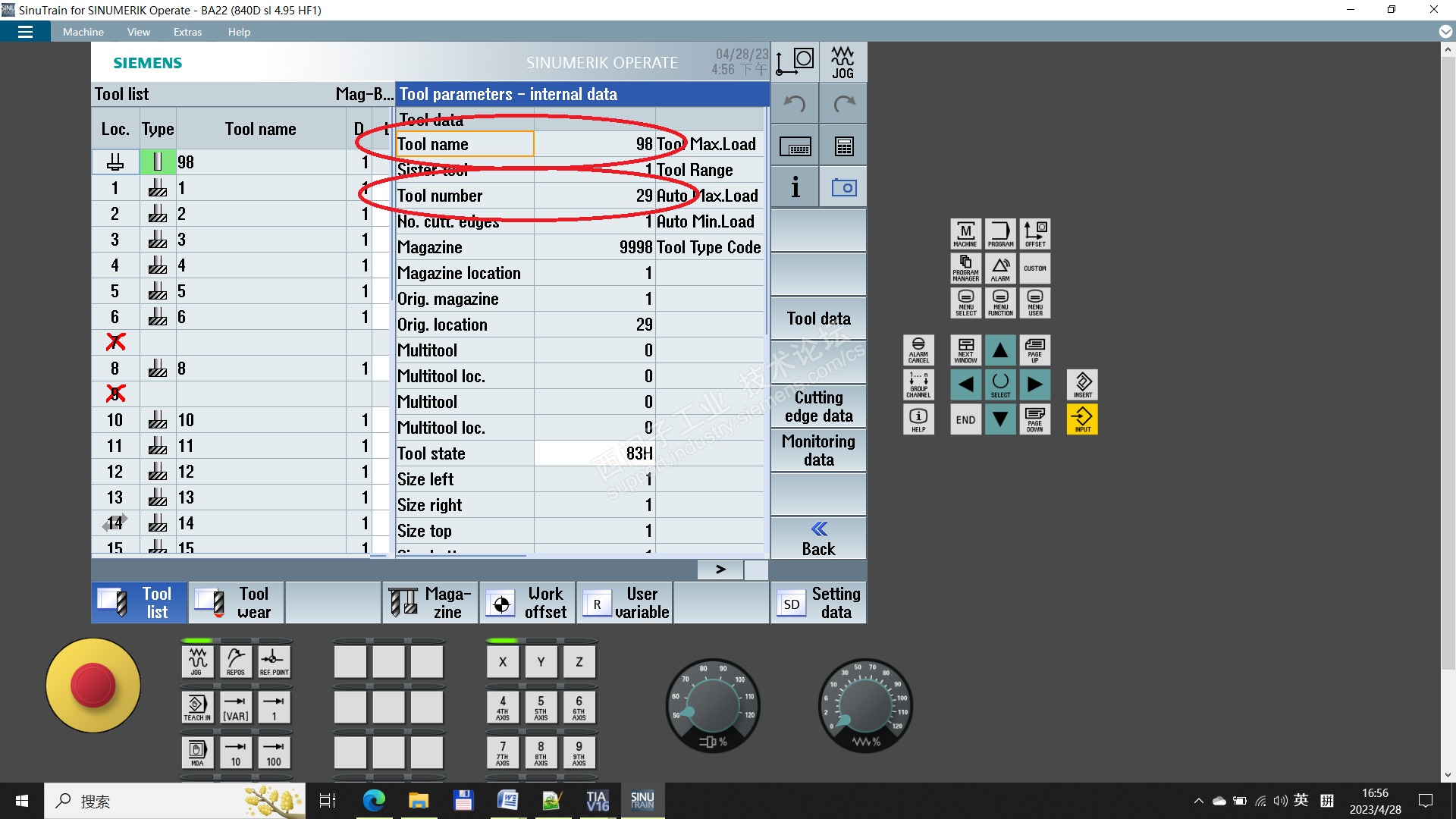 下图中主轴刀具号98(有效刀具号也称刀具名)