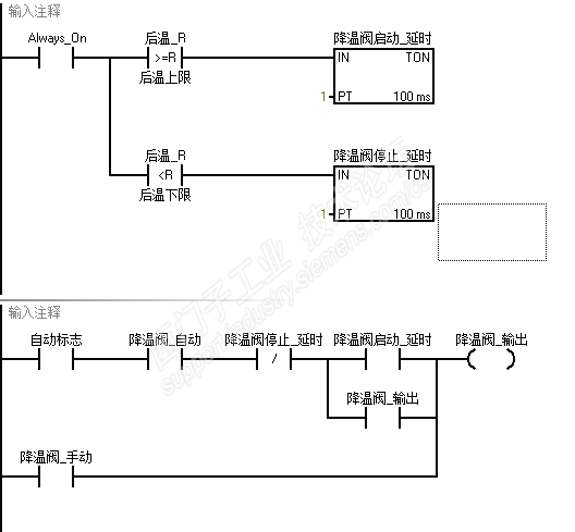 目前用下列程序,阀门开启太久降温幅度太大,开的太短降温不了
