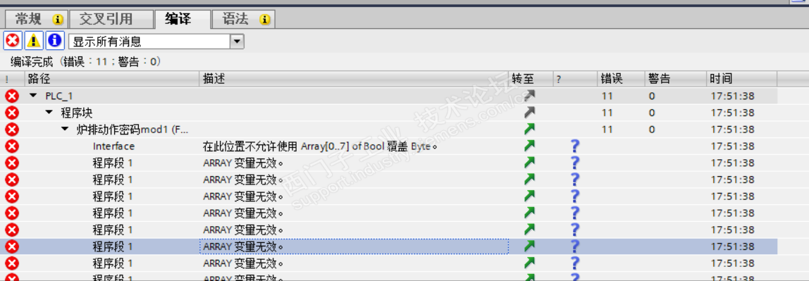 在FC块中用数组of Bool变量覆盖Byte变量出现报错是哪里搞错了吗