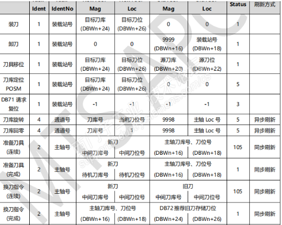 同步刷新应先判断新刀和旧刀是否有刀,若无刀具,必须将相应刀库号和刀位号设 置为 0,否则 FC8 应答错误。