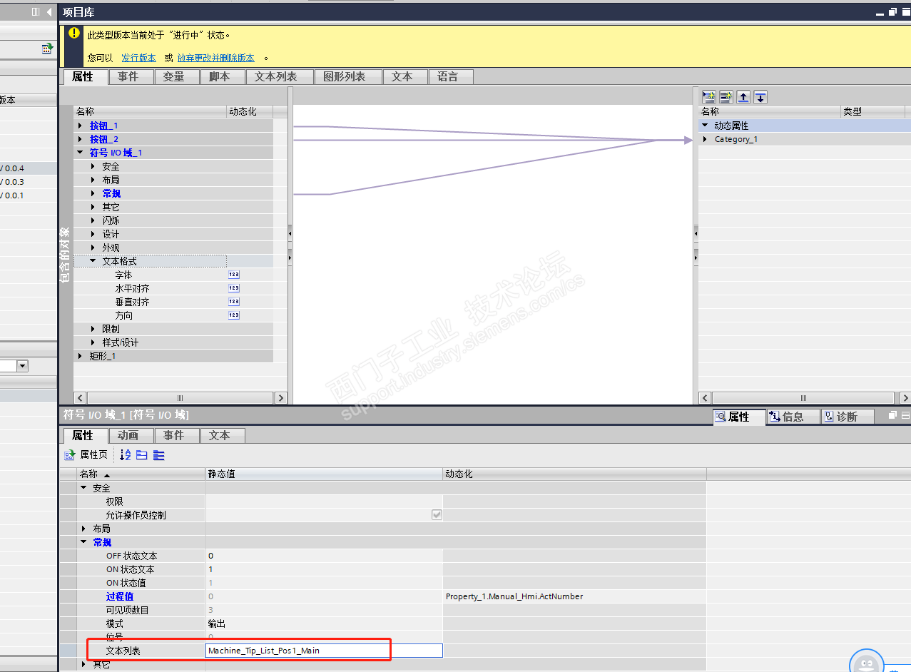 触摸屏中面板实例中符号IO域 文本列表怎么在实例化后重新选择对应的文本列表