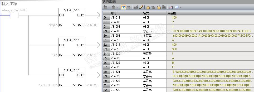 汉字(例如“前进”)以字符串的方式存储在V区,现在想把他还原显示在触摸屏上,在SMART200里面监控发现,对于字母字符,选择ASCII格式能正常显示,选择字符串格式,不能正常显示;对于汉字字符,不论选择ASCII格式还是字符串格式,都不能正常显示出汉字。