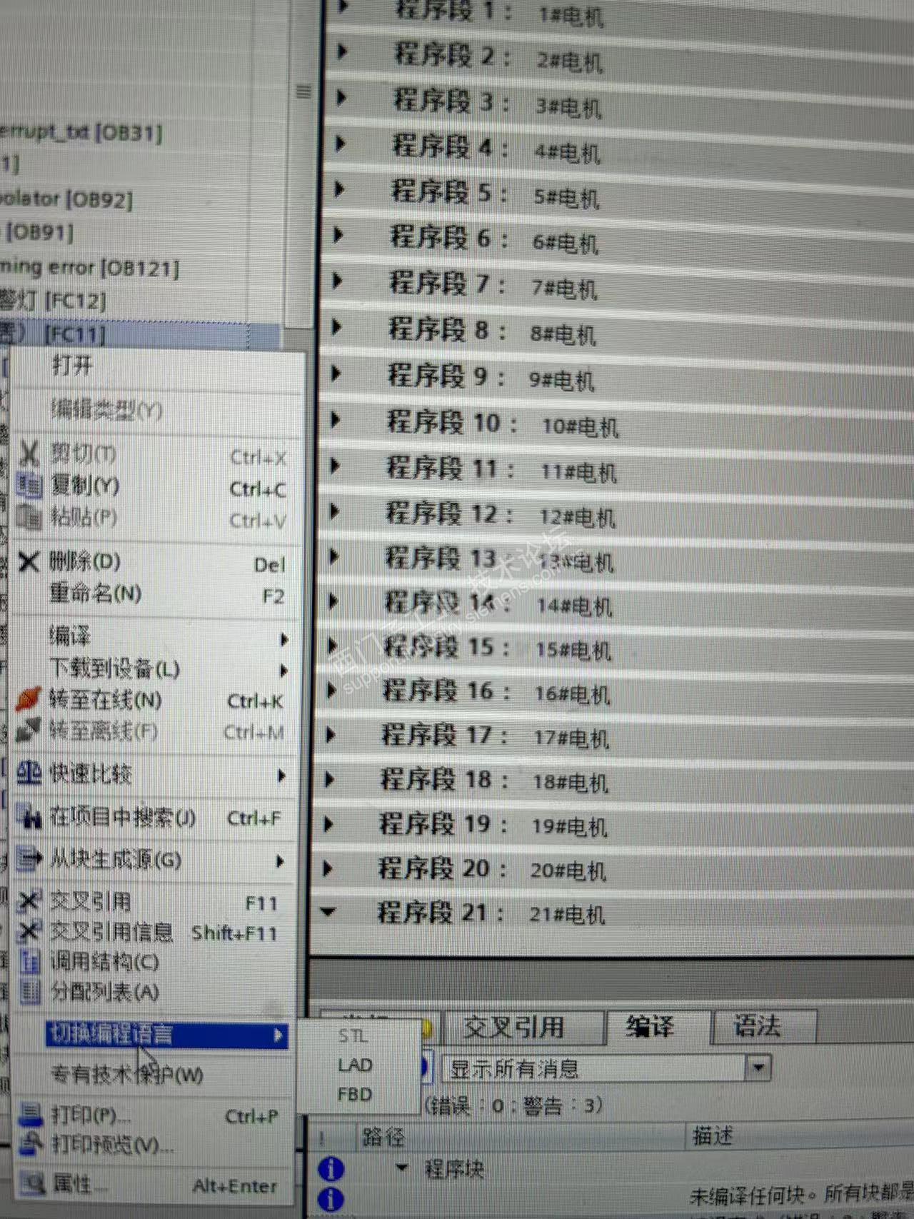 如图所示,之前我写了一个全是梯形图的程序,现在因为个人原因,需要将LAD转换为SCL或者STL语言,博途这边转换为STL选项是灰色不可选状态。特此来询问各位大佬,有什么办法可以完成转换嘛。