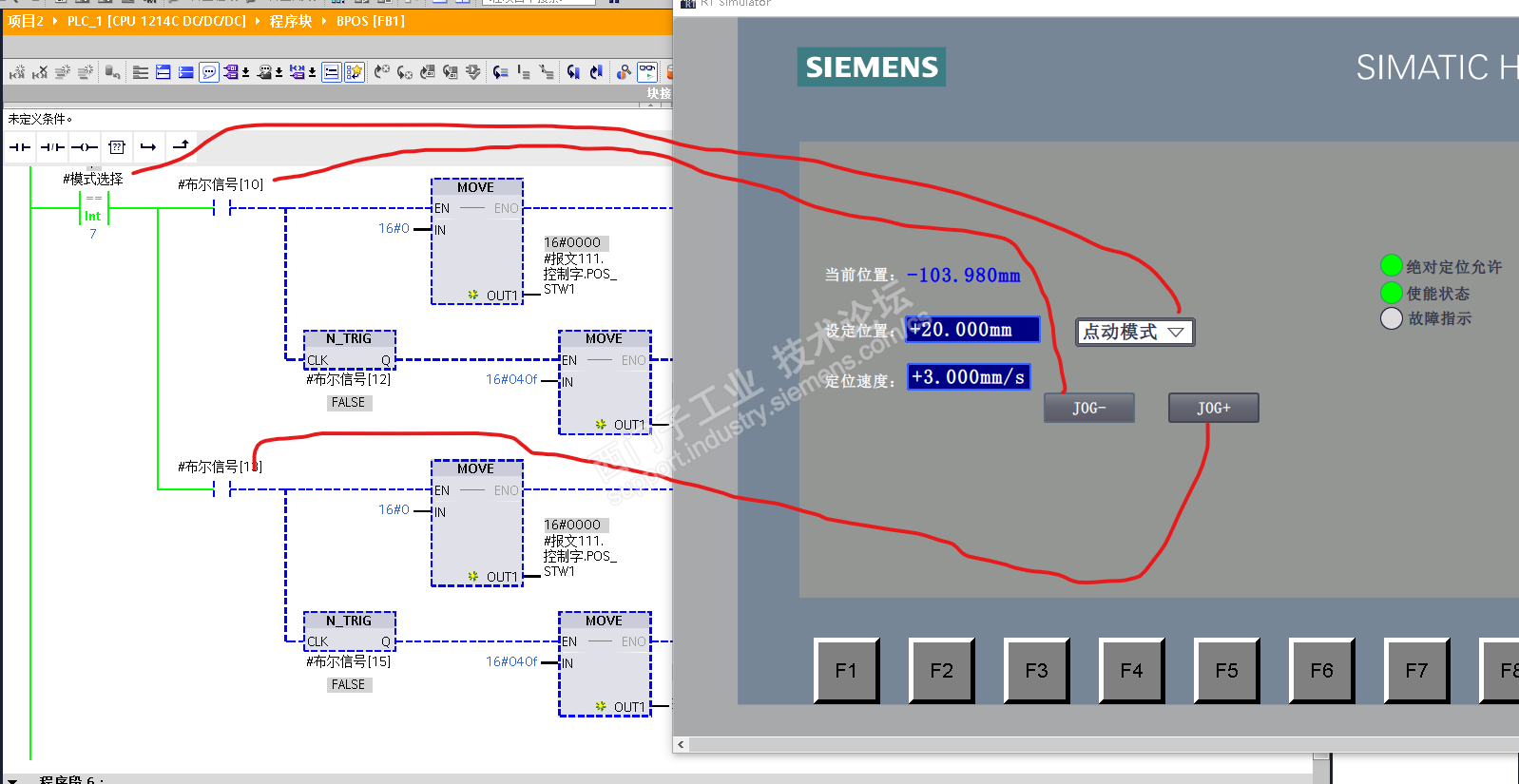 V90的点动模式又可分为JOG和INCH(寸动,每次动作固定距离),JOG点动模式比较常用