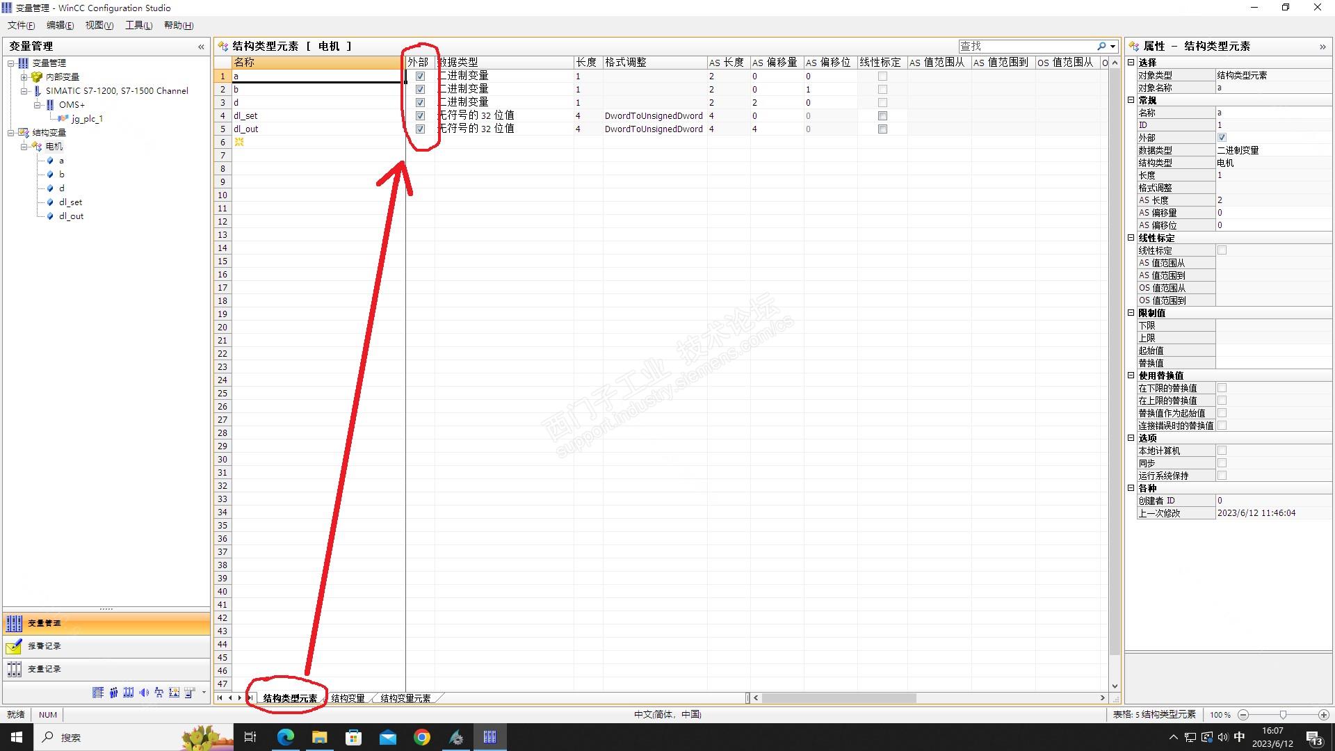先了解一下结构变量创建的:先创建“结构类型元素”(后缀),创建时需要选择是否外部变量;再创建“结构变量”(前缀),两者均创建好后,“结构变量元素”是自动生成的(前缀+后缀)。楼主的问题是:图一中“结构变量”是连接了外部连接“H5U”,但图二中连接是“内部连接”,这说明你在创建“结构类型元素”时没有勾选“外部”,所以你生成的“结构变量元素”连接是“内部变量”,当然就没有地址给你选了。