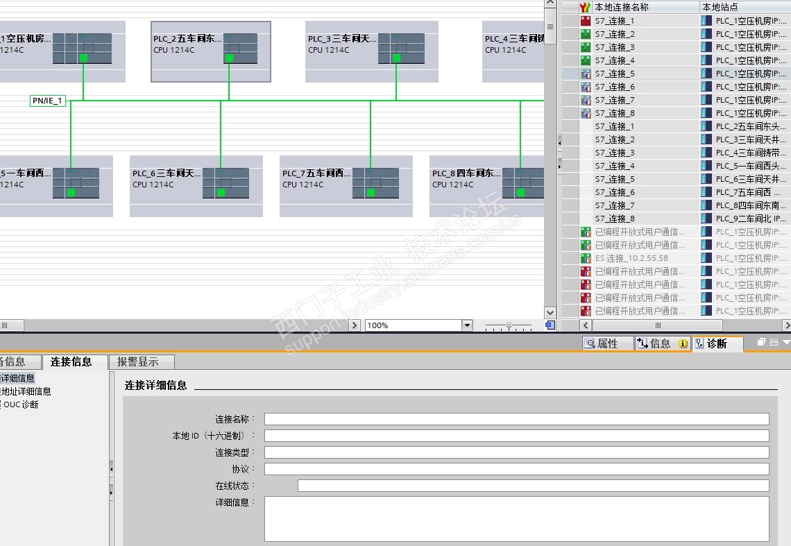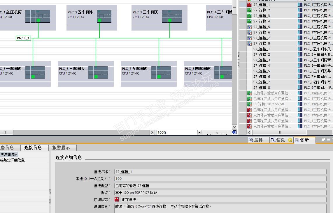 一台1200与8台1200 进行S7通讯,设置一样,现在有4台可以连接,有4台连不上,诊断里有连接详细信息都没有,什么情况?
