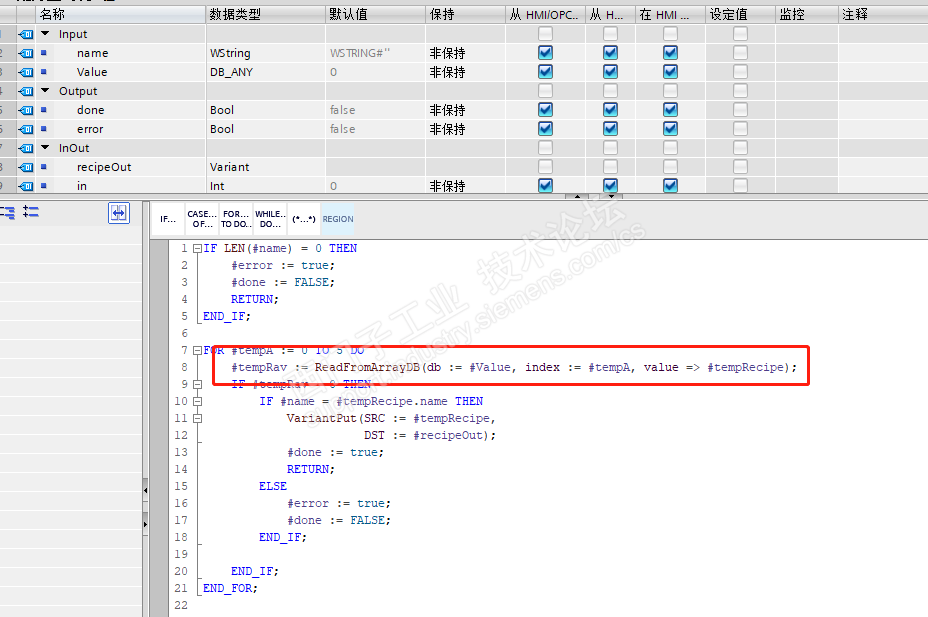 这个ReadFromArrayDB指令一直报错8154 数据类型不对,这个怎么修改