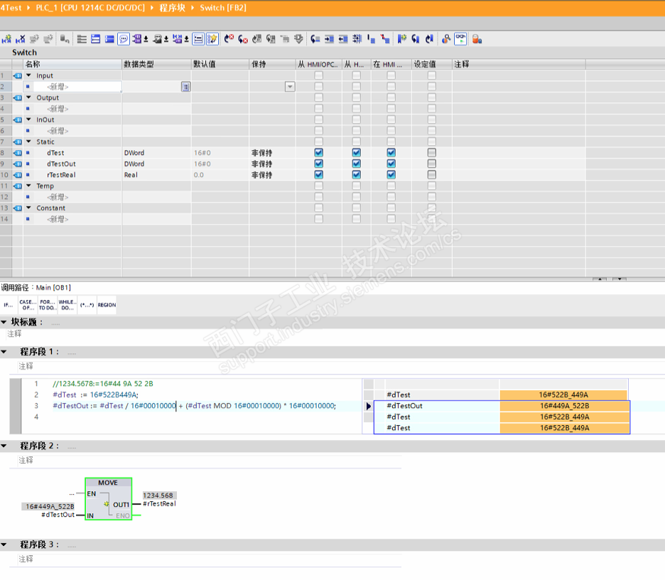 首先,数据本质都是一串二进制数,哪怕他是打乱的,你应该先调整后原始数据,再把它当成浮点或者dint来处理。