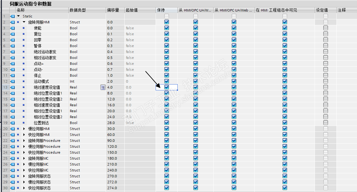 那么,我在触控屏里写好位置值和速度值,就是写入了PLC,比如写进DB100.DBD1,那这个数据块里的数值怎么会消失呢?请问怎么保持呢?