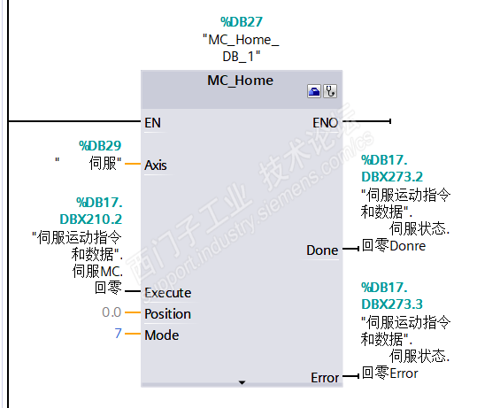 在编程MC_Home时发现一个问题,设置Mode=0或者1时,电机其实并不会回原点,只是把电机停驻所在位置设为原点。那这样的话,这次电机停驻在导轨500的位置(假设导轨上有刻度从0-1000mm),把这里当成了零点;下次开机时,电机停驻在600的位置,我们又在面板上按了“回原点”软按钮,电机就又把这里当成了原点。前后两次的原点其实相差100,那么上次让电机往前走188mm,其实是走到导轨上的688毫米刻度这里,这次让电机往前走188mm,其实是走到导轨上的788毫米刻度上。这会导致严重的问题的。