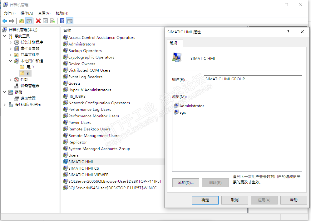 系统本地用户和组里面的SIMATIC HMI也分配了当前用户“sgx”。