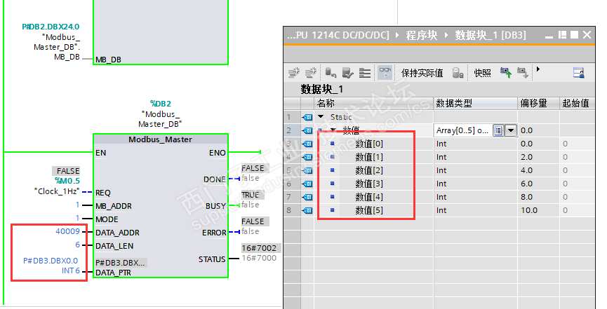 40009控制启停,40014控制频率,我单独给这两个地址写值,能正常控制变频器,但是用指针,却给40014写不了频率值,这是为什么??
