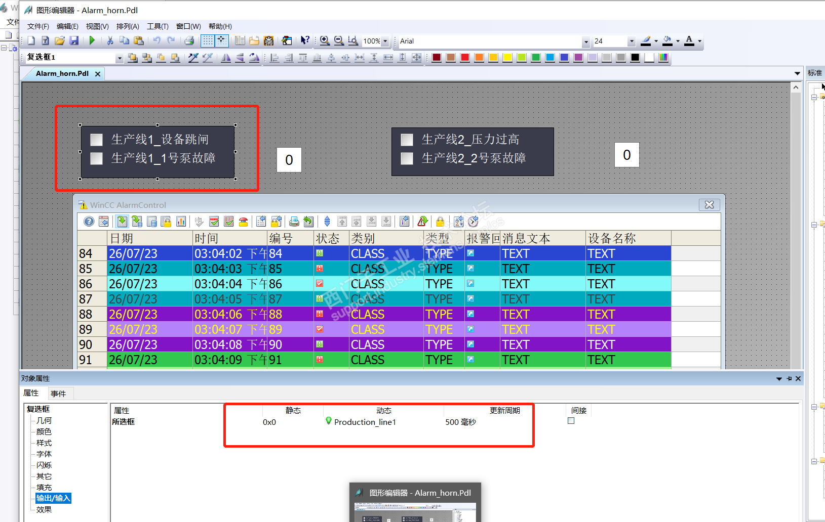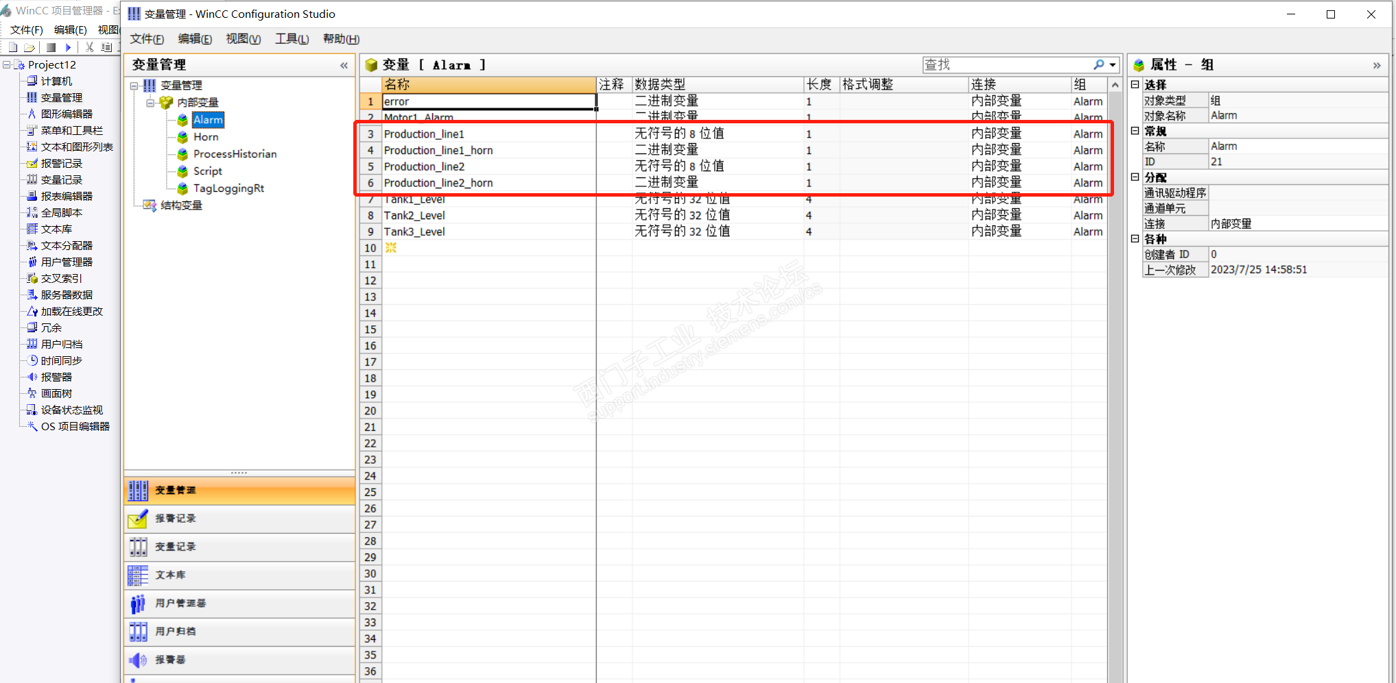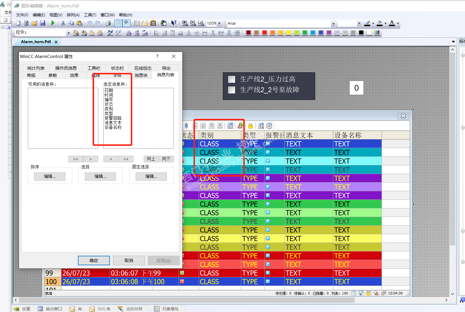 按照课程里的组态,变量和报警控件都组态了,也组态了触发声音的二进制变量和WAV格式语音文件,运行之后,报警消息可以触发出来,但是看效果来说像是生产线1这个消息类别没有把触发声音报警的二进制变量置1,但是单独把触发声音的二进制变量置1,语音文件可以正常播放,是哪里的问题?