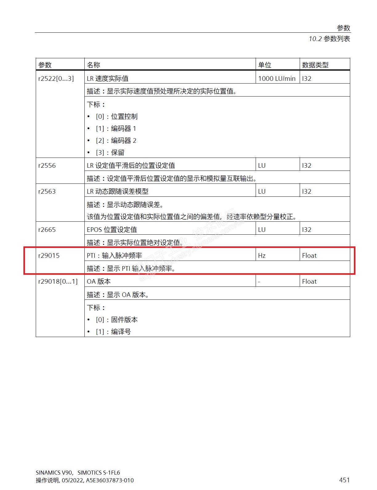我们设定的“电机每转一圈的脉冲数”似乎与此无关。就是说,我们设定“电机每转一圈的脉冲数”为10000后,继而又在r29015里输入一个值比如10kHz、10kHZ、1Mhzp这样的。结果就会是这样的:同样是上位机(PLC)向电机发射10000个脉冲,但是如果是1秒内就发完,则电机很速很快;如果是10秒才发送完,则电机转速降到十分之一了。这个1秒、10秒,就与r29015里的设定值有关了。具体怎么有关,你们自己计算,因为这是旁支,我谈多了会把人脑冲昏。