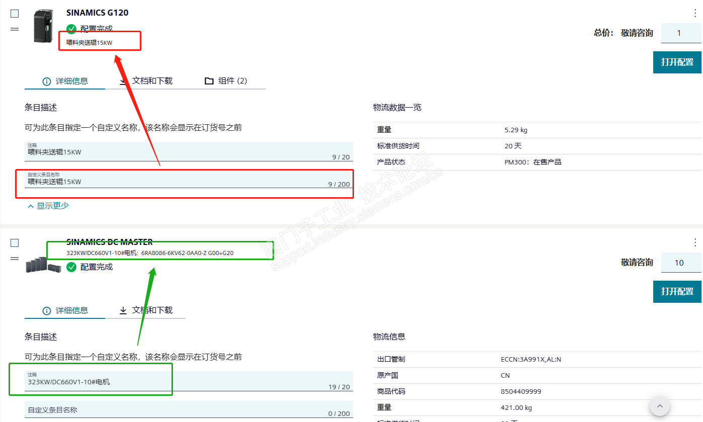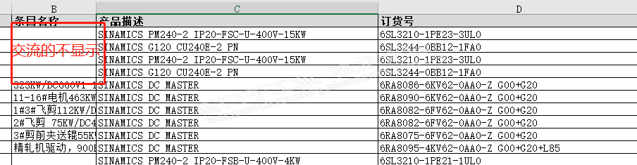 在这个图中,对DCM的注释可以直接在项目中显示,但是对G120的则需要定义在”自定义条目名称“中。这并不关键,关键的是交流系统的这个注释也好,自定义条目名称也好,在下载的表格中显示不出来,不利于对所下载表格的应用。如下图: