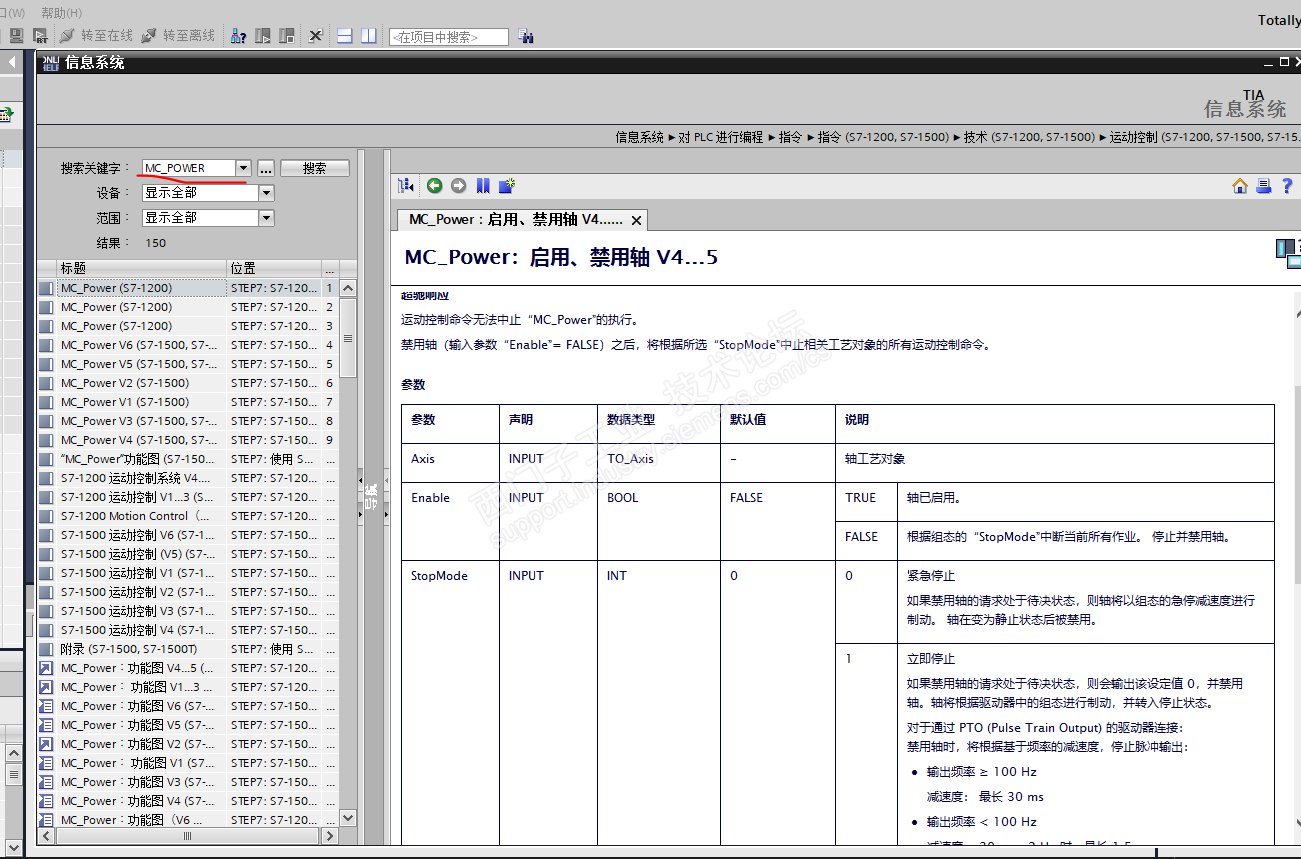 如果您说的是西门子标准函数的引脚定义,您可以通过在博途帮助中搜索该功能块(比如搜索MC_POWER)找到功能块引脚定义;如下图所示: