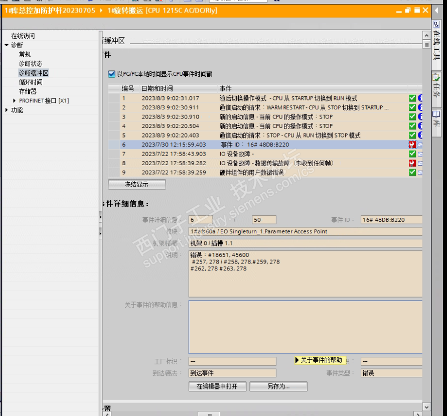 请教一下各位专家,西门子1200与西克编码器组态,有时候会出现事件ID16#48DB:B220。这个是什么问题?有对应事件ID的说明吗?