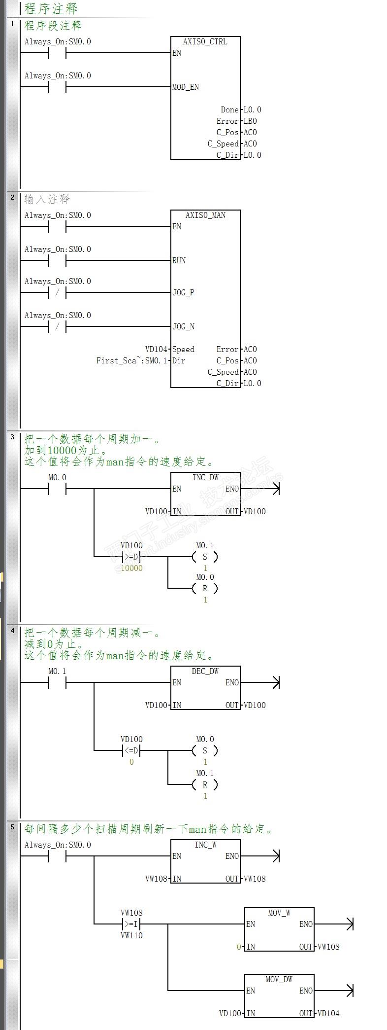 设定到100以上的时候,眼看好像很正常。每100个扫描周期更新man指令的速度给定。指令的输出CSpeed可以跟着变化。