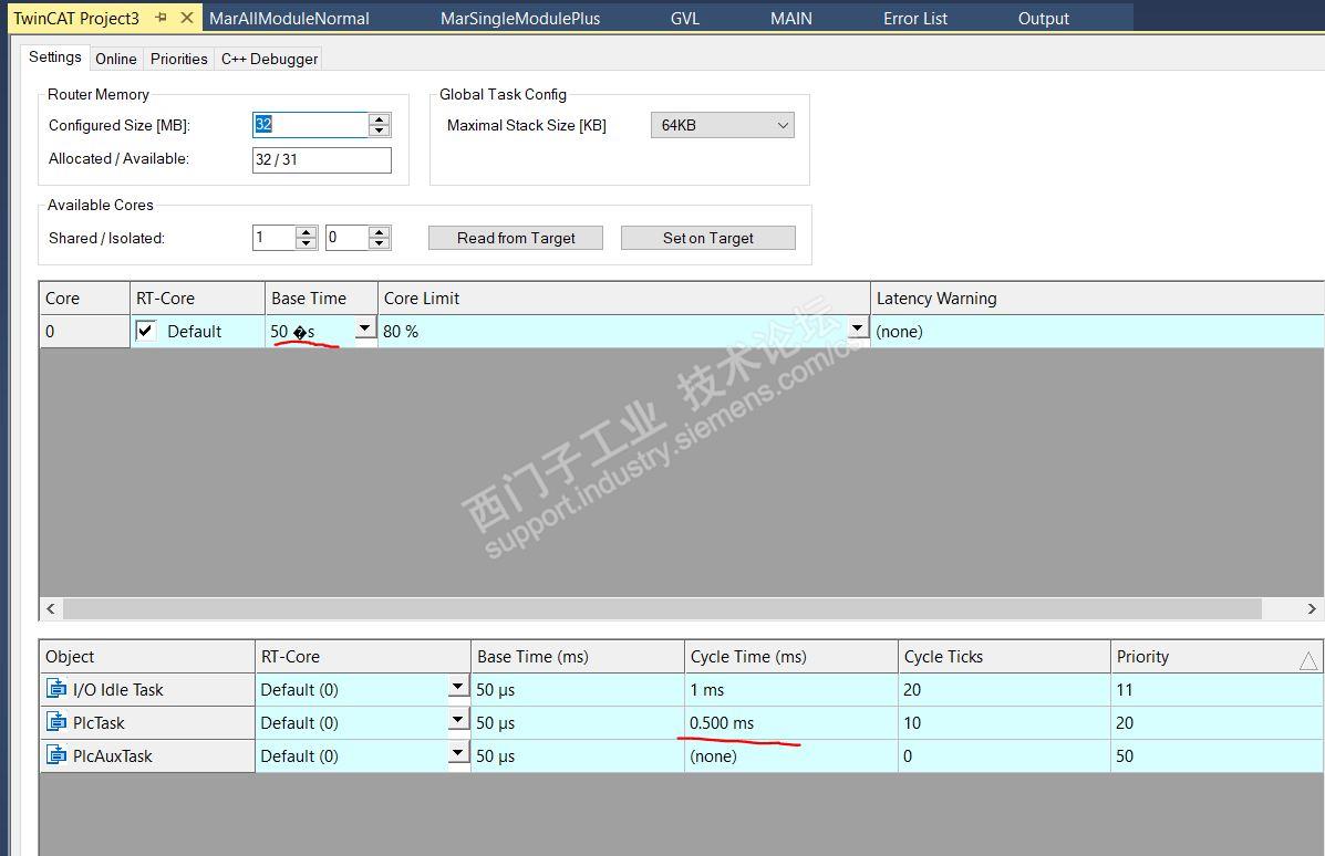 多数人都知道,后面2种是可以支持配置多个任务的,每个任务可以设定不同的优先级和周期时间,一般伺服轴不超过2ms,实际也有设5ms的;个人感觉有点像西门子的中断程序;