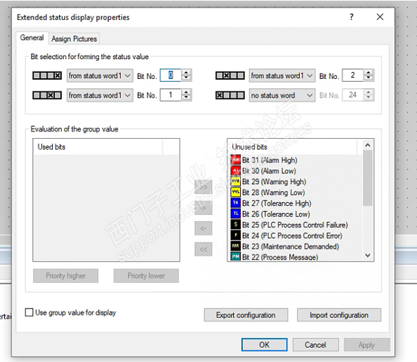 组态扩展状态位,在自定义对象的组态对话框中,来自状态字1~4,和旁边的Bit.No位号,与分配画面选项的Index索引有什么关系?看了PCS7的相关资料,一直没弄明白块图标的扩展状态显示这个索引和状态字以及位号的关系。