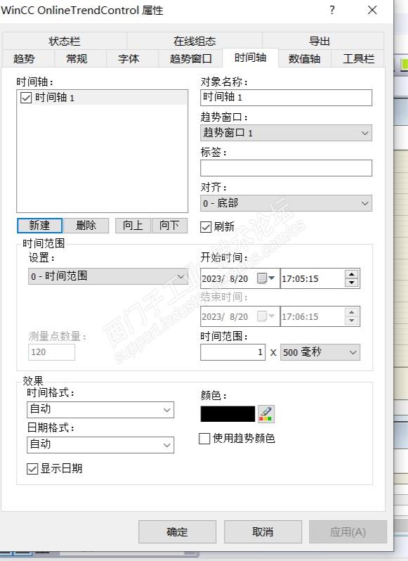 wincc 趋势控件是可以单独组态时间轴的,下图是控件截图,但我想把这个时间范围自由在画面通过写入变量的方式更改。每一条趋势可以在不同的变量更改,不知道是否可行?