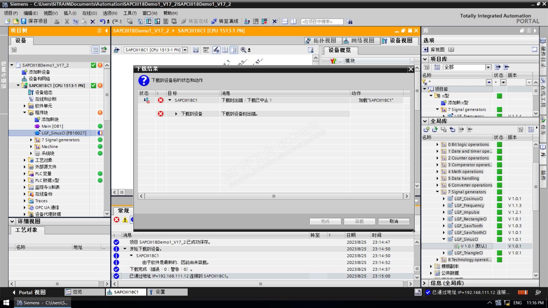 请问第三章2.1的演示中,将LGF文件中例程拖至左侧程序中,下载