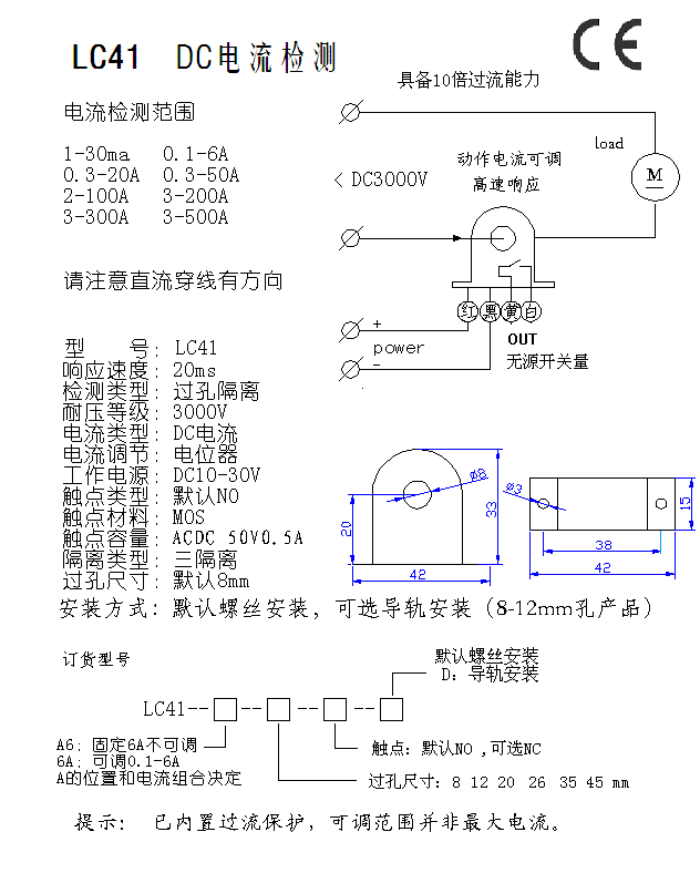 还有另外2款,LC20H 检测交流 固定无需调节阈值。LC41检测直流 最小1ma
