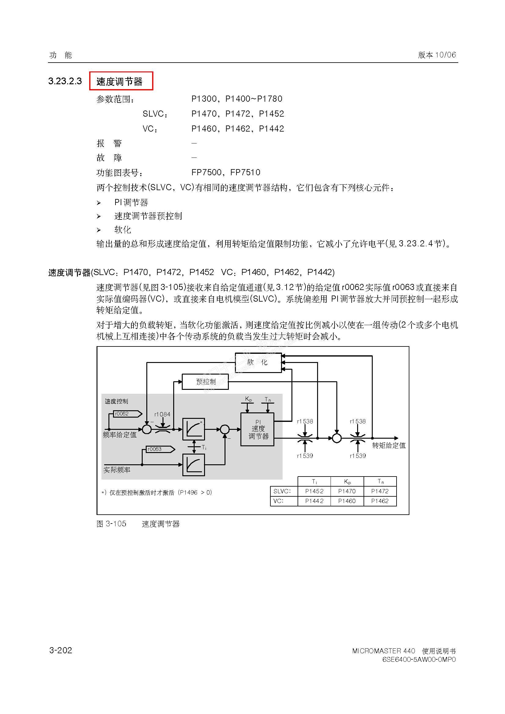 其实哪本西家传动的手册,都要提到调节器的整定方法。只是看你能不能关注,阅读,并且看懂。现在给你一个MM440的说明书摘录。我最近调试就是以它指导,调试Kp和Tn,达到了理想的效果的。