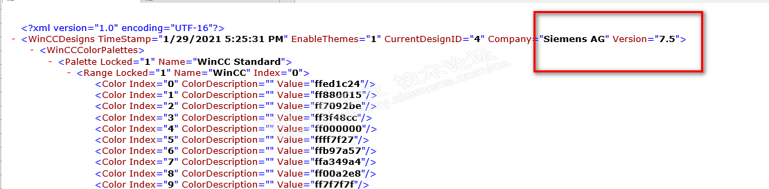 或者您也可以直接使用记事本打开单个画面文件:pdl文件。在里面查找V e r s i o n 这个单词,单词后面也是版本信息。但是也是图形被该版本编辑过后才有最新的信息。