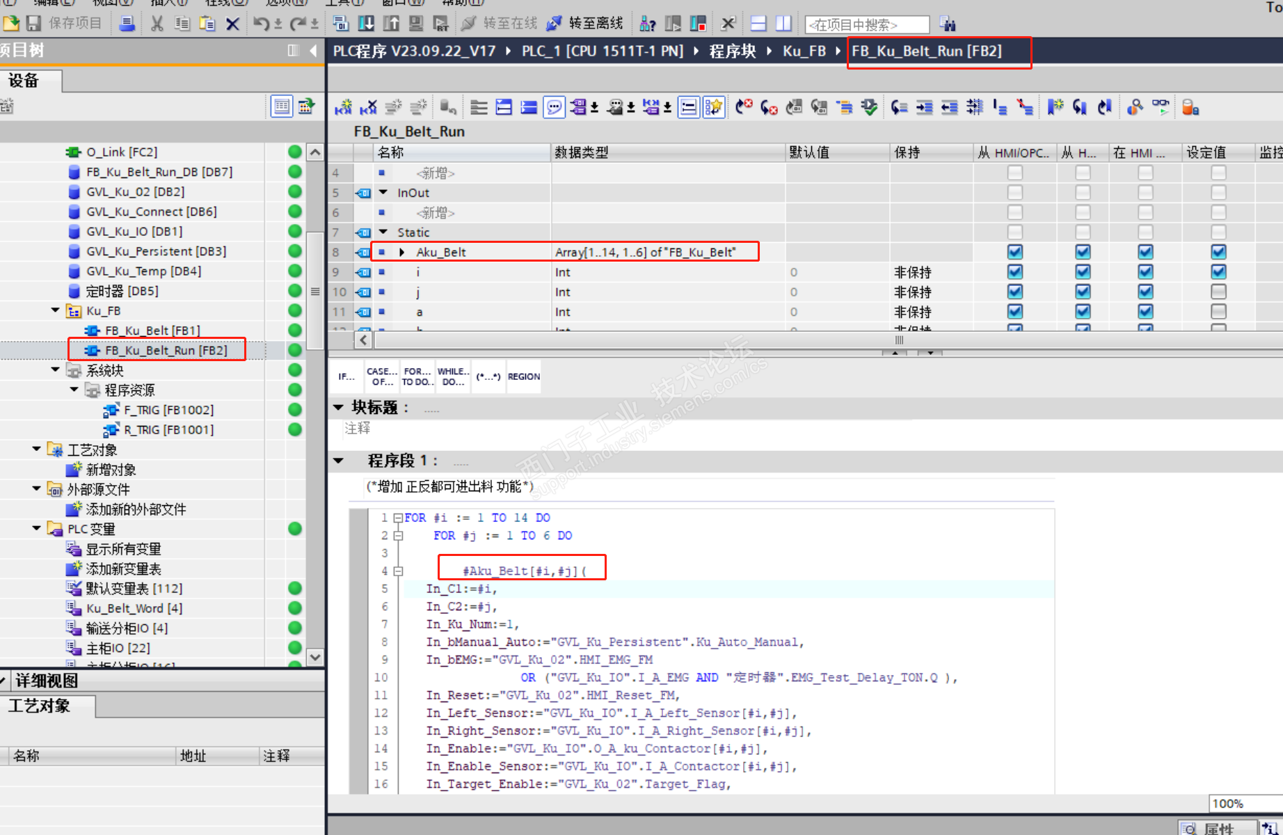 博途 FC调用一个FB,FB 内含多重实例,FB内SCL语句写的FOR循环,怎么监控每一个实例的程序呢?