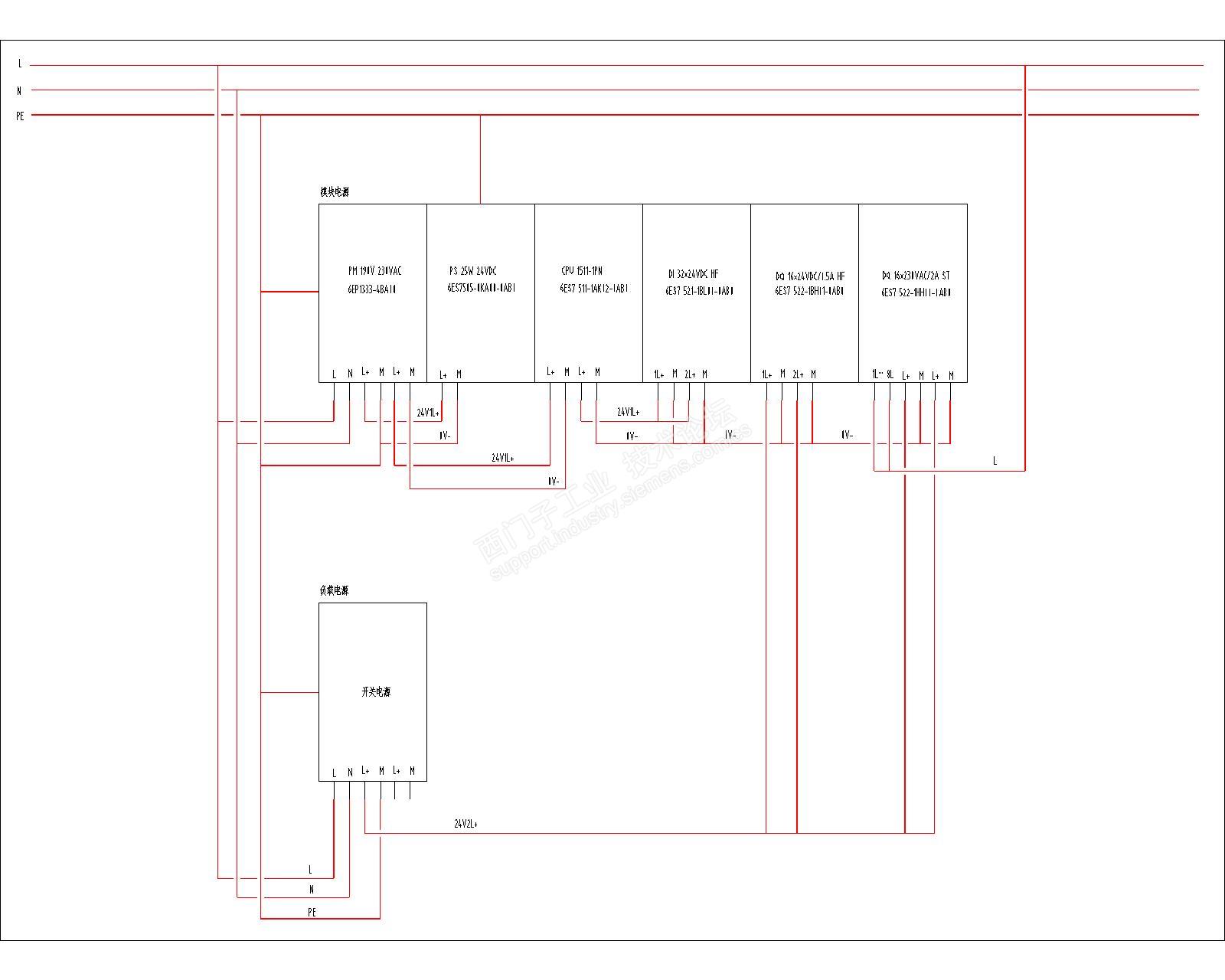 现在有个疑问,上述供电模式以前经常在S7-200、 S7-200 SMART、 S7-300的系统中使用,因为S7-200、 S7-200 SMART、 S7-300的系统没有PS系统电源。S7-1500这种新系统,新增了一个PS系统电源供电,如果后面两个模块由单独的负载电源供电,会不会在后面两个模块内部引起电源冲突?