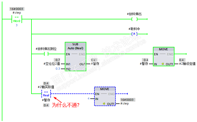 请问等于指令在0.4时,能流为什么不通呢?