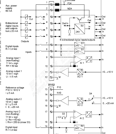 其实我开始想法就是如果是PLC控制VC速度,在PLC内运算输出就比较好办,我就是使用外部张力控制器给定速度给70VC,模拟量给定速度。使用一个开关控制内部通讯给定速度和外部张力控制器给定速度