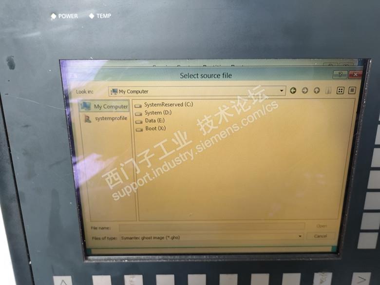 840DSL系统由于需要重装WINDOWS系统和HMI,硬盘里有GHO备份,进入恢复中心后选择“恢复分区”,提示选择“源文件”和目标分区,硬盘里面有C、D<System>、E<Data>、X<Boot>四个分区,C盘里有个名为“systemReserved”的GHO文件,D盘里也有个名为“SYSTEM”的GHO不知应该选择哪个个文件,选哪处作为目标分区,谢谢!