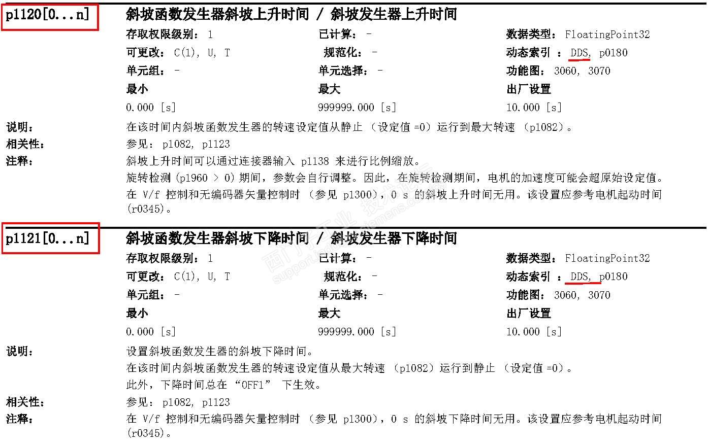 而且,在线改变斜坡函数的加减速时间,没必要参数组转换操作,可以在线改变加减速时间的比例系数。实现加减速时间长短的变化。