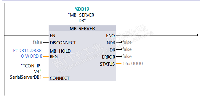 捣鼓了一天,才知道Connect是用来接外围485设备的,Connect引脚必须新建一个数据块,类型是TCON_IP_V4。我在半清晰半懵懂中建立了TCON_IP_V4数据块(元素与数据块同名),如下图