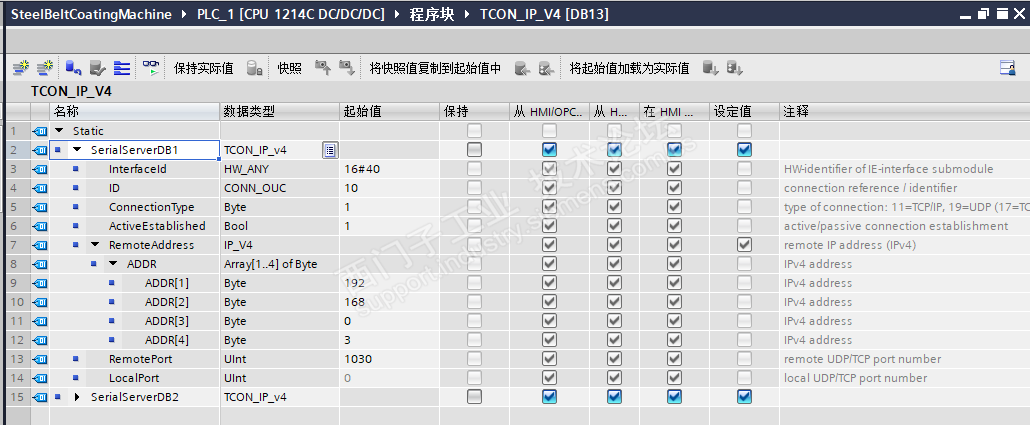 ID、IP地址、端口号是写在TCON_IP_V4数据块里的。理解这一步也不容易。