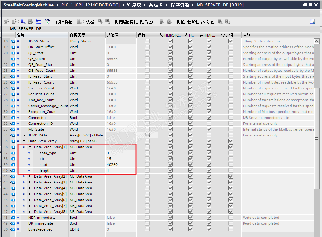 可是这里依然没法写485设备的地址,查来查去,才明白是在主角的背景数据块里写485设备的地址。