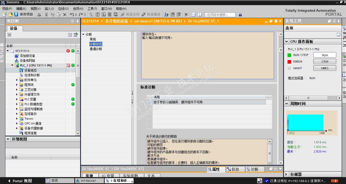 1500与ET200SP通过PN/IO组态,提示模块参数分配时出错,应如何正确填写参数