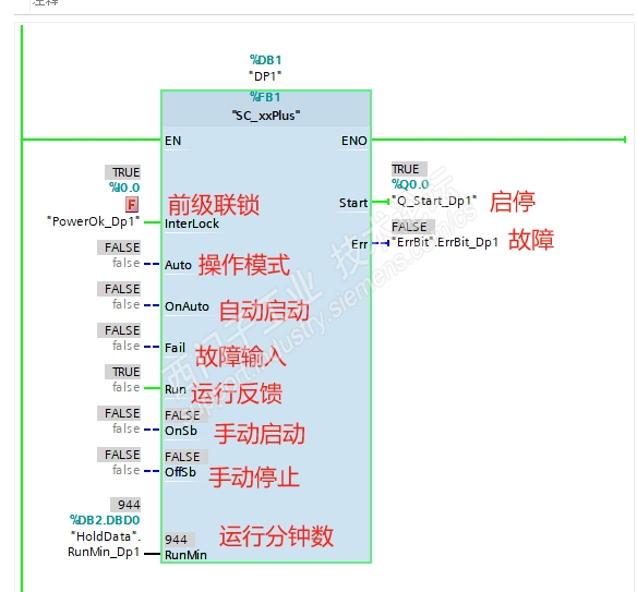 这个FB也适用于普通的工频电机启停控制,Fail可以是热继电器的开点。