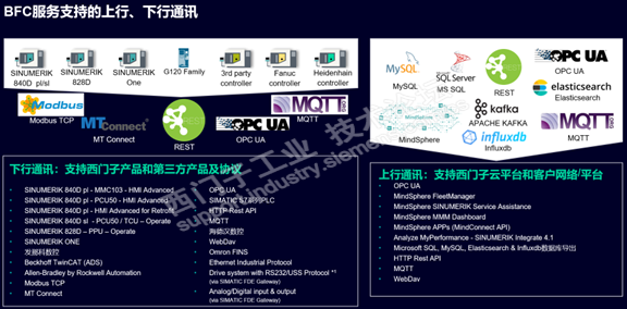支持广泛的设备侧和上位系统侧的主流通信接口协议;针对BFC尚未直接支持的通信接口协议,西门子中国团队也可以根据客户需求订制开发。