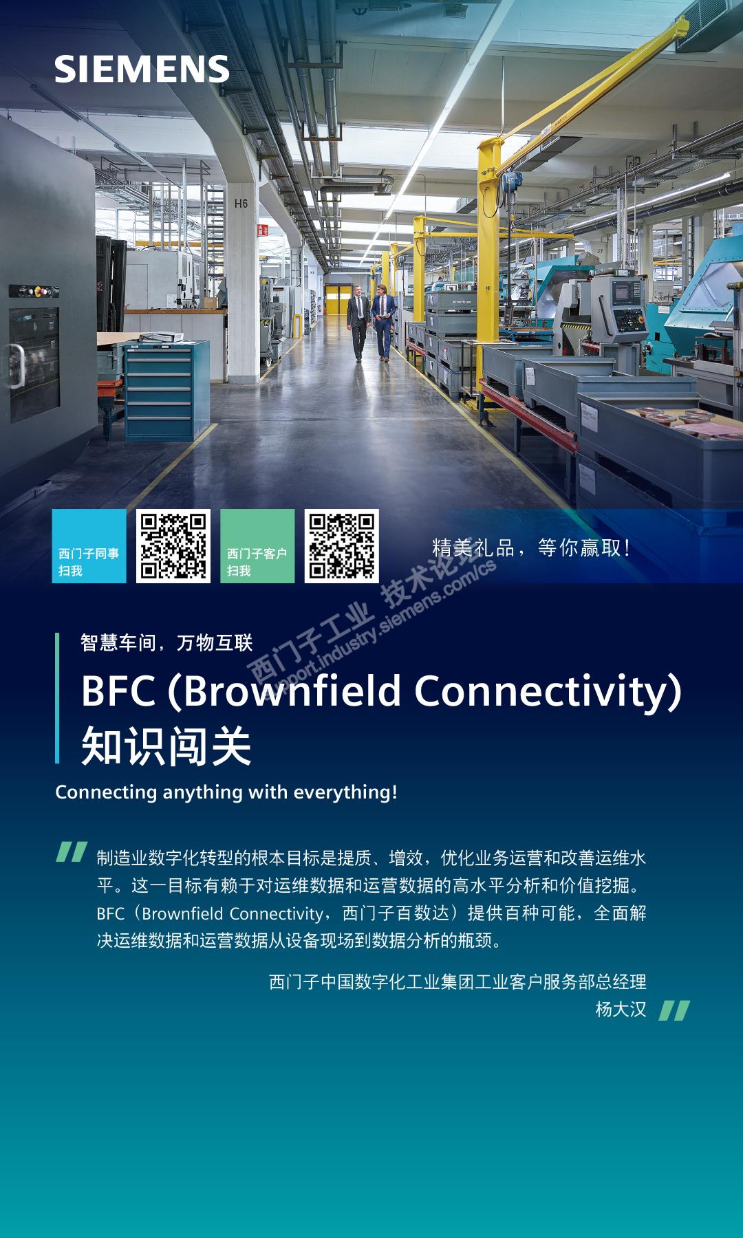 即便您不是西门子客户或者销售同事也没关系!欢迎其他西门子的小伙伴长按扫描生成自己的二维码,成为BFC分享官,赢取超实用的定制数据线员工卡挂绳!