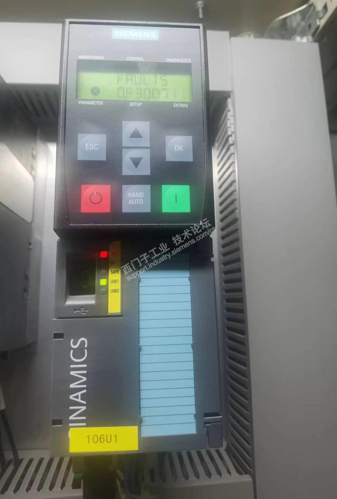 3、我过20秒后插上网线,变频器报错F30071(功率模块没有收到新的实际值),电机停止运行,影响了生产,报错见图片;