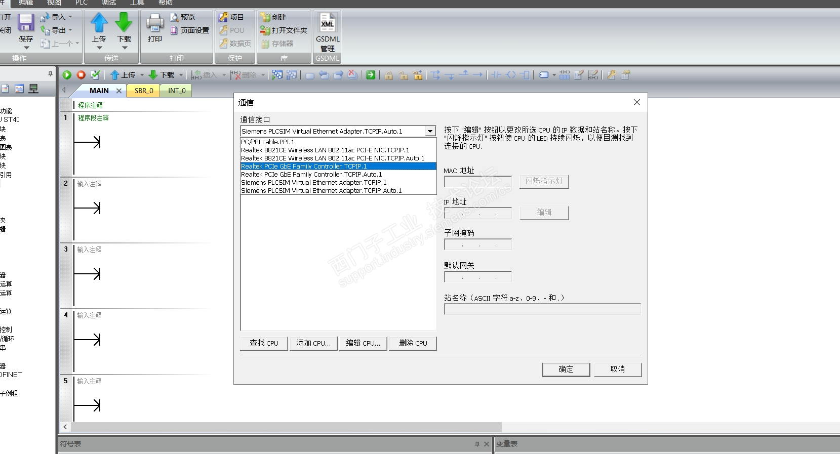 但是,现在问题依旧,仍然找不到plc,可以ping到plc;还有谁知道200 smart的pg/pc接口该如何设置,需要设置吗